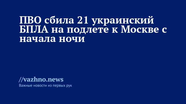ПВО сбила 21 украинский БПЛА у Москвы с начала ночи