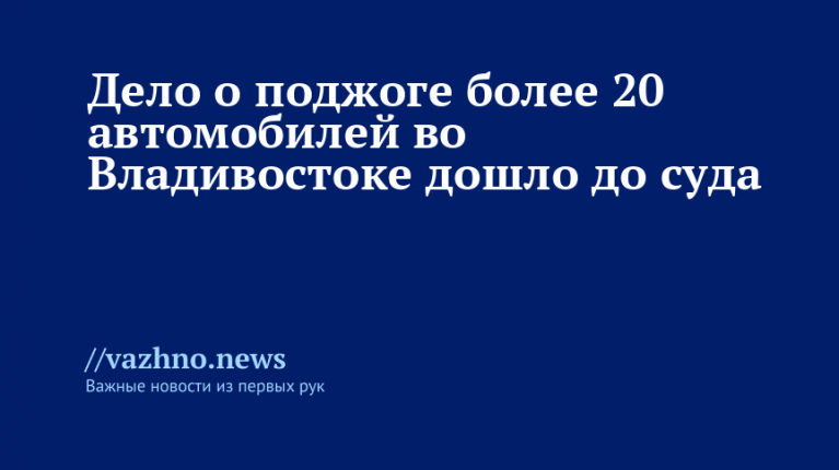 В суд поступили материалы уголовного дела, связанного с поджогом более 20 автомобилей на стоянке во Владивостоке. Организатор данного преступления был задержан.