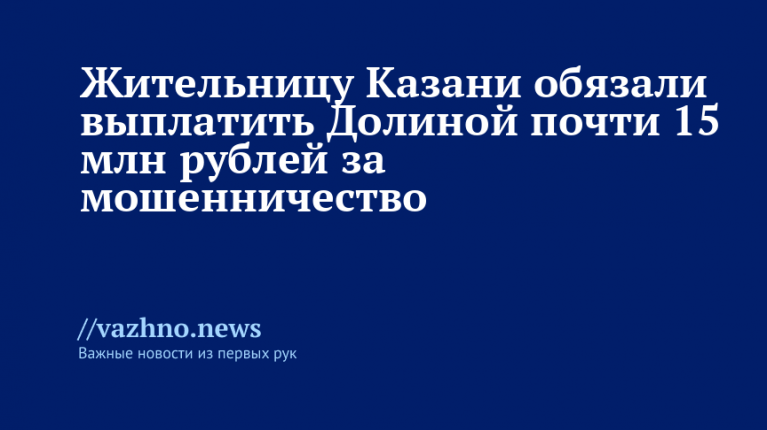 Жительница Казани заплатит Долиной почти 15 млн рублей за мошенничество