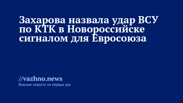 Атака Вооруженных сил Украины (ВСУ) на офис каспийского трубопроводного консорциума (КТК) в Новороссийске стала предупреждением для Евросоюза (ЕС) о том, что Киев намерен проводить удары по инфраструктуре стран ЕС. Об этом 24 сентября сообщила официальный представитель МИД России Мария Захарова.