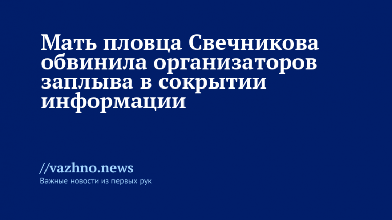 24 сентября, в среду, Галина, мать пропавшего во время заплыва в Босфоре пловца Николая Свечникова, заявила, что организаторы мероприятия скрывают некоторые детали, связанные с исчезновением ее сына.