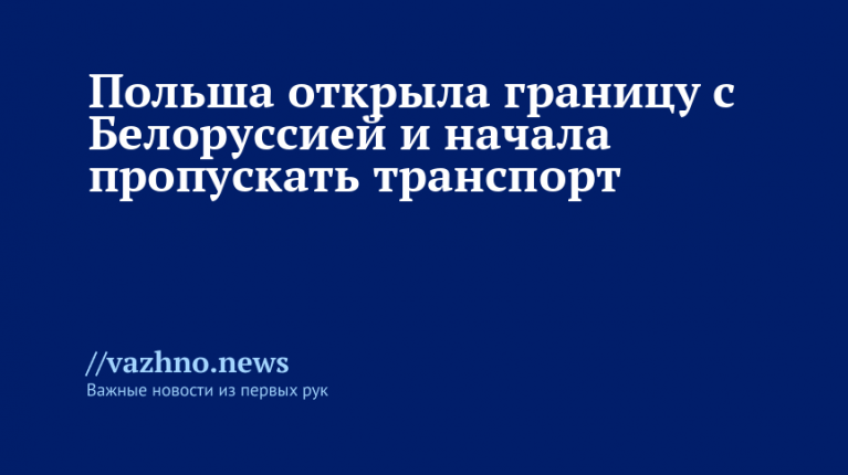 В материале говорится, что «Польша открыла границу с Белоруссией и начала пропускать транспорт на свою территорию после возобновления работы пунктов пропуска».
