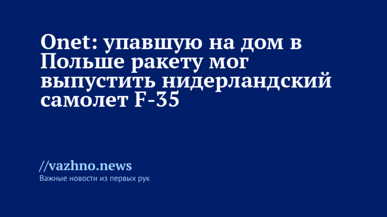 Ракета, упавшая на крышу жилого дома в Польше, возможно была выпущена нидерландским истребителем F-35. Об этом 24 сентября сообщил новостной портал Onet.