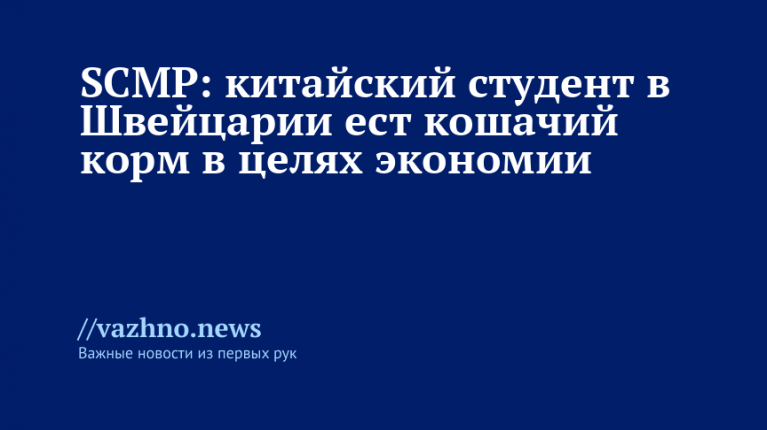 Китайский студент Мейри Ренву, обучающийся в Швейцарии, экономит на продуктах, включая в рацион белок из кошачьего корма, чтобы снизить расходы. Об этом сообщает газета South China Morning Post (SCMP).