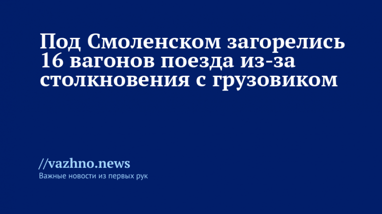 Под Смоленском произошло возгорание 16 вагонов после столкновения грузового поезда с грузовиком на железнодорожном переезде. Об этом 26 сентября сообщил губернатор региона Василий Анохин.