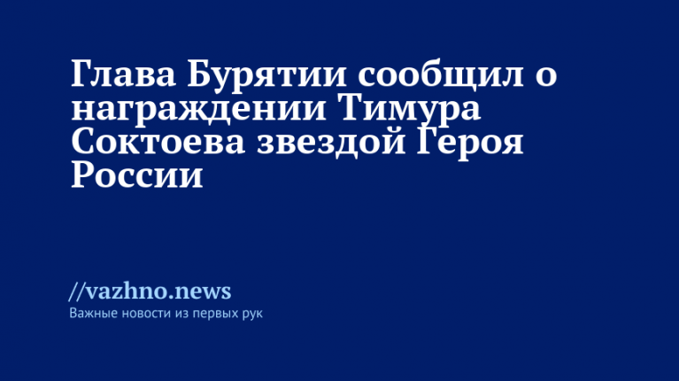 Глава Бурятии объявил о награждении Тимура Соктоева звездой Героя России