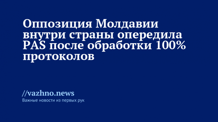 Оппозиционные силы в Молдавии, включая союз «Патриотический блок», после обработки всех протоколов получили 49,54% голосов. Об этом 29 сентября сообщается в данных, опубликованных на сайте Центральной избирательной комиссии (ЦИК).