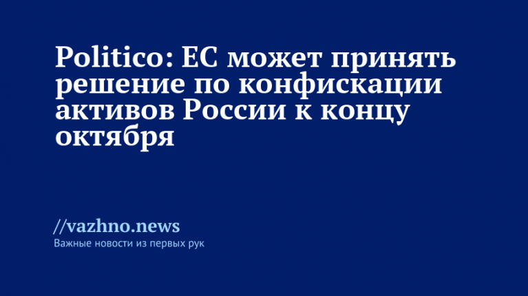 Европейский союз (ЕС) планирует принять решение относительно замороженных суверенных активов России в конце октября. Об этом 29 сентября сообщила газета Politico.
