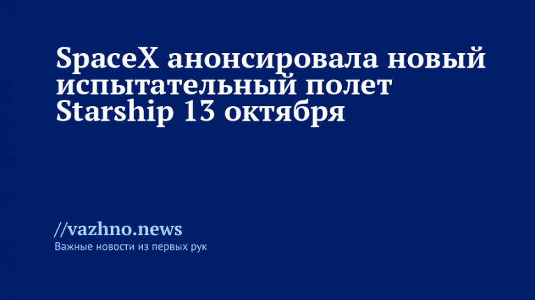 «Запуск 11-го рейса Starship назначен на понедельник, 13 октября», — отмечается в сообщении.