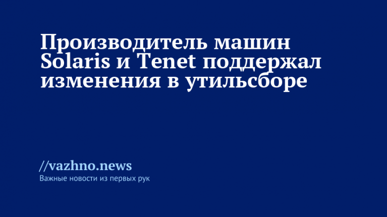 Solaris и Tenet поддержали изменения в утильсборе на машины