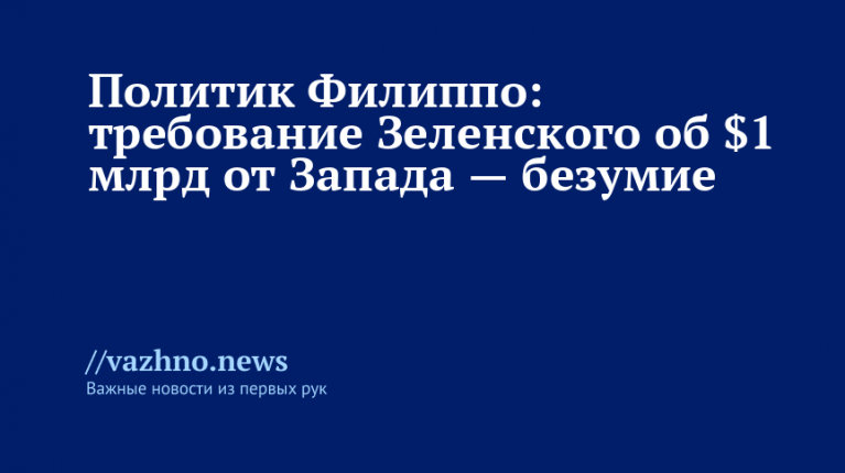 Флориан Филиппо, возглавляющий французскую партию «Патриоты», 30 сентября охарактеризовал как безумство требование президента Украины Владимира Зеленского о выплате $1 млрд ежемесячно в рамках соглашения о поставках оружия между США и НАТО.
