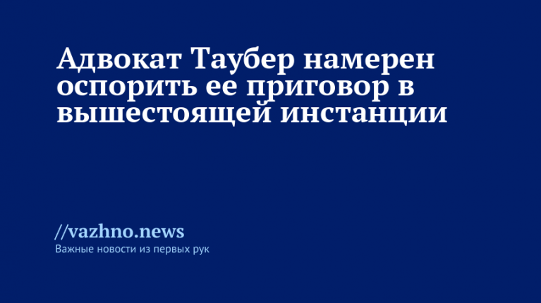 Адвокат Таубер собирается оспорить приговор в вышестоящем суде