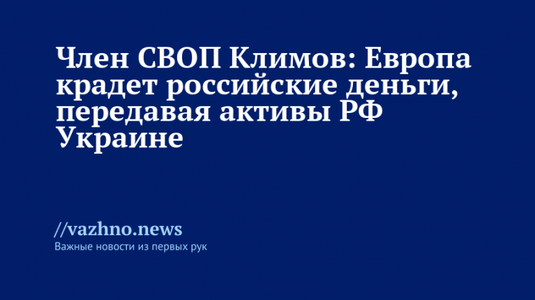 Бывший сенатор и член Совета по внешней и оборонной политике (СВОП) Андрей Климов во вторник, 30 сентября, рассказал о серьезных последствиях для Евросоюза (ЕС) в случае передачи украинской стороне российских замороженных активов.