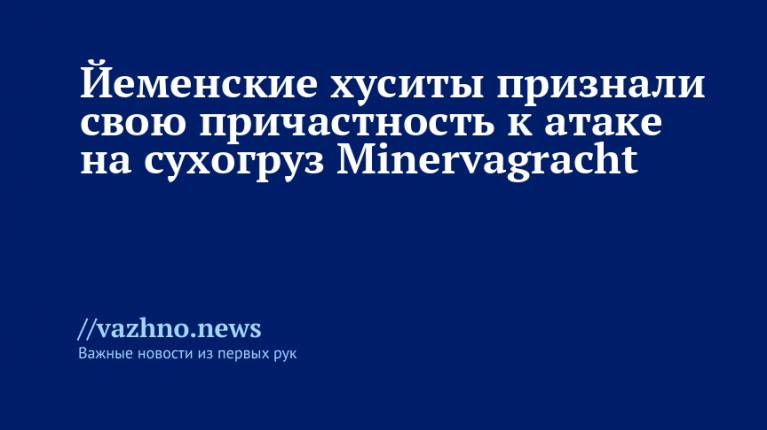 Движение «Ансар Аллах» из Йемена (хуситы) официально подтвердило свою роль в атаке на нидерландское судно Minervagracht и взяло на себя ответственность за инцидент. Об этом 30 сентября сообщил телеканал Al Masirah, ссылаясь на заявление Вооруженных сил Йемена.