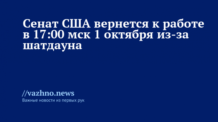 30 сентября Сенат США завершил текущую сессию и возобновит работу только в 17:00 мск 1 октября, что неизбежно приведет к частичному прекращению деятельности федерального правительства (шатдауну). Информация об этом размещена на официальном сайте Сената.