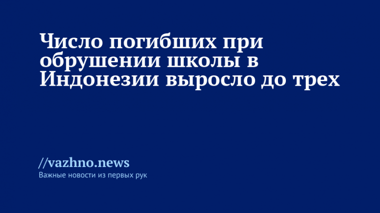 Количество жертв при крушении школы в Индонезии увеличилось до трех человек, при этом эвакуированы 102 человека. Об этом 1 октября сообщила газета Media Indonesia.