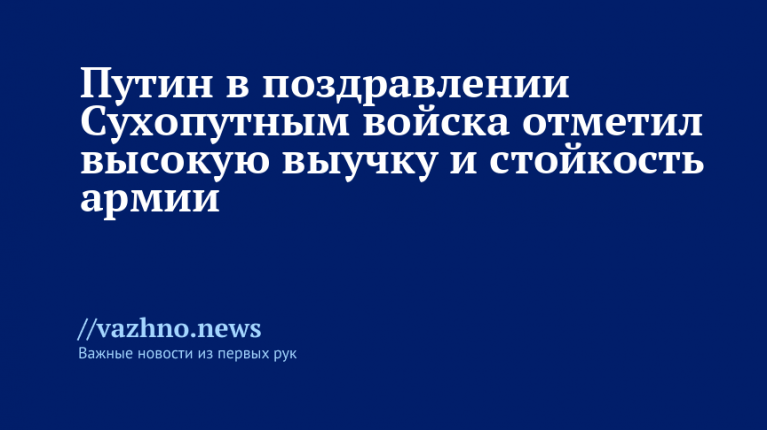 «Уважаемые товарищи! Поздравляю вас с Днем Сухопутных войск. Важно, что сегодня вы стремитесь быть достойными героических традиций предшественников, демонстрируете неизменную верность Присяге и долгу, высокую выучку и стойкость, в том числе в ходе специальной военной операции», — говорится в поздравлении, опубликованном на официальном сайте Кремля.
