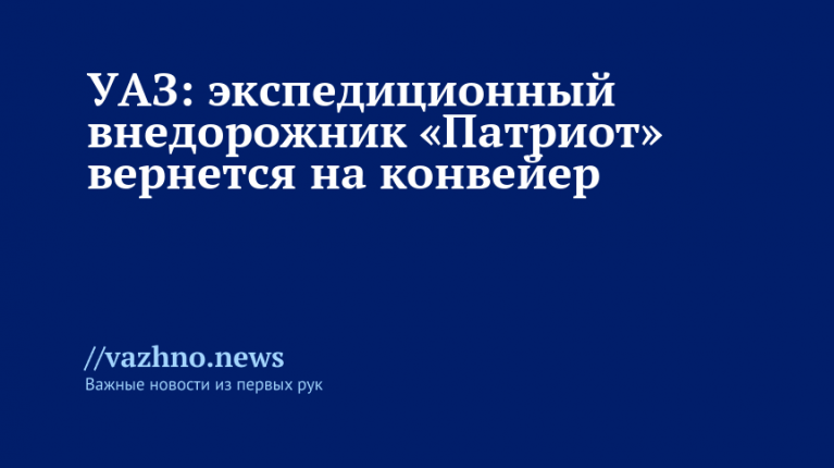 Внедорожник УАЗ «Патриот» в экспедиционной версии в будущем вновь появится на производственной линии предприятия. С таким заявлением 1 октября выступили представители пресс-службы Ульяновского автозавода.