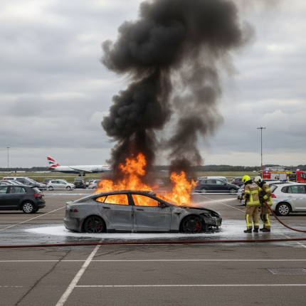 Daily Mirror: в Британии на парковке аэропорта Хитроу загорелся электромобиль