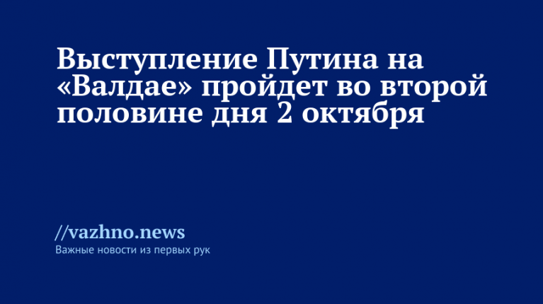 Президент России Владимир Путин в четверг, 2 октября, планирует обратиться к участникам пленарной сессии 22-го ежегодного собрания клуба «Валдай». Эта информация стала известна 1 октября на брифинге от официального представителя Кремля Дмитрия Пескова.