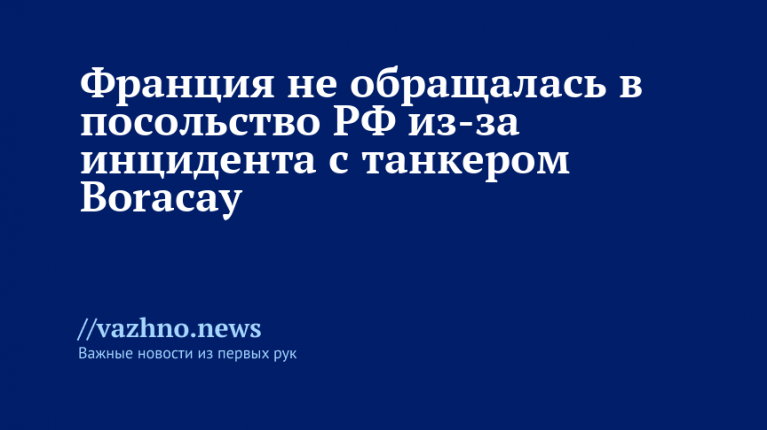 «В Посольство не поступало обращений от французских властей относительно ситуации, связанной с нефтяным танкером Boracay», — подчеркнули в дипломатическом представительстве.