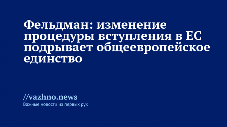 Фельдман: изменение процедуры вступления в ЕС подрывает единство Европы