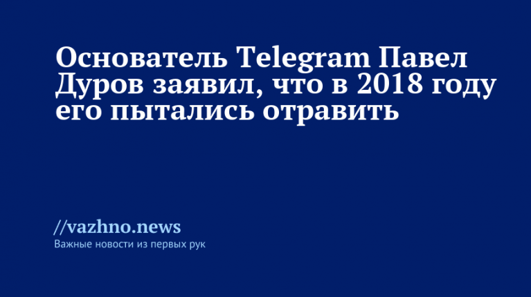 Основатель мессенджера Telegram Павел Дуров несколько лет назад пережил попытку отравления. Об этом он рассказал 30 сентября в интервью блогеру Лексу Фридману, которое было опубликовано на YouTube-канале последнего.
