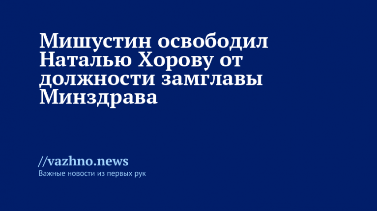 Премьер-министр Российской Федерации Михаил Мишустин подписал распоряжение, которым Наталья Хорова была освобождена от поста заместителя министра здравоохранения. Данный документ был опубликован 1 октября на официальном интернет-портале правовой информации.