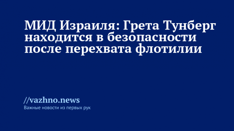 После того как была перехвачена «Глобальная флотилия Сумуд» (GSF), направлявшаяся в сектор Газа с гуманитарным грузом, шведская экоактивистка Грета Тунберг и ее спутники, находившиеся на борту судов, находятся в безопасности. Об этом 1 октября сообщает МИД Израиля.
