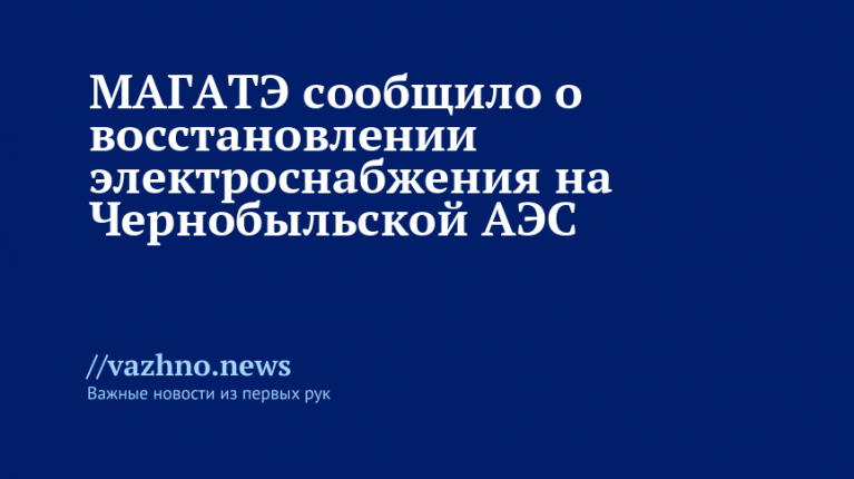 Ранее в тот же день министерство энергетики Украины проинформировало о перебое с электроснабжением нового саркофага, установленного над разрушенным четвертым энергоблоком ЧАЭС. Ведомство отметило, что Чернобыльская АЭС «оказалась в блэкауте».