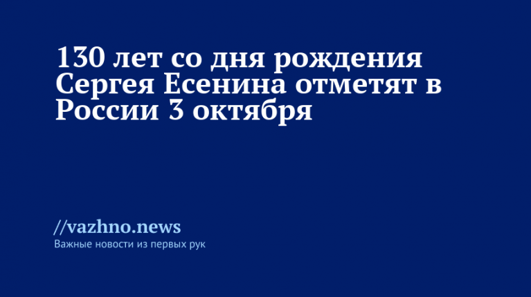 130-летие Сергея ЕсенинаПредложение учредить празднование 130-летия Сергея Есенина озвучил актер Сергей Безруков в ноябре 2024 года на заседании совета, поддерживающего русский язык и языки народов России. Идею поддержал президент РФ Владимир Путин. В январе 2025 года глава государства дал поручение правительству подготовить программу мероприятий.