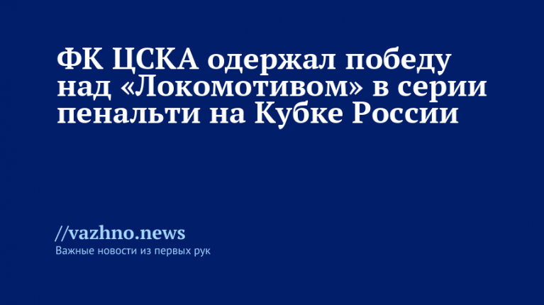 Футбольный клуб (ФК) ЦСКА выиграл у ФК «Локомотив» в серии пенальти в матче 5-го тура Пути Российской Премьер-лиги (РПЛ) FONBET Кубка России. В основное время игра завершилась с нулевым счетом (0:0), однако серия 11-метровых завершилась победой ЦСКА с результатом 4:2.