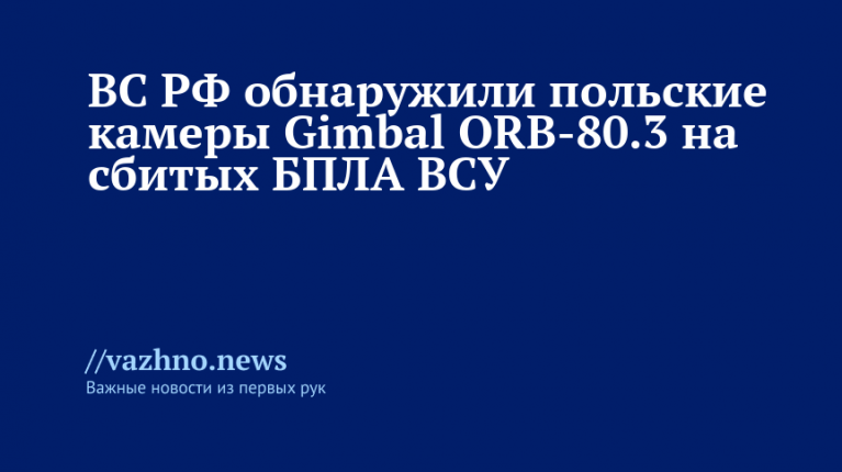 «На тяжелых дронах типа «Баба-яга» установлены камеры польского производства, мы нашли их на сбитых БПЛА под Купянском. Это Gimbal ORB-80.3», — передало агентство «РИА Новости» его слова.
