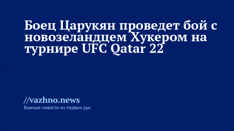 Армяно-российский боец Абсолютного бойцовского чемпионата (UFC) Арман Царукян встретится в поединке с новозеландцем Дэном Хукером на турнире UFC Qatar 22. Информация об этом появилась 1 октября.