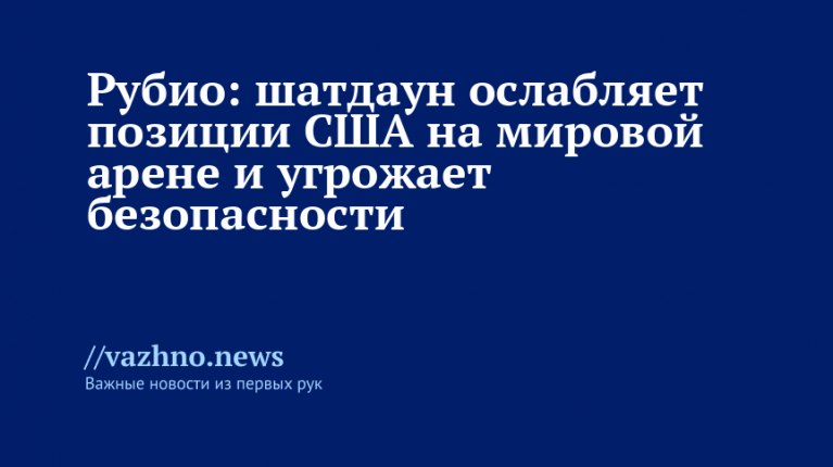 Госсекретарь США Марко Рубио высказался о том, что остановка работы федерального правительства в Соединенных Штатах наносит ущерб международному авторитету Вашингтона и ставит под угрозу национальную безопасность. Свое мнение он выразил в социальной сети Х (ранее Twitter) 2 октября.