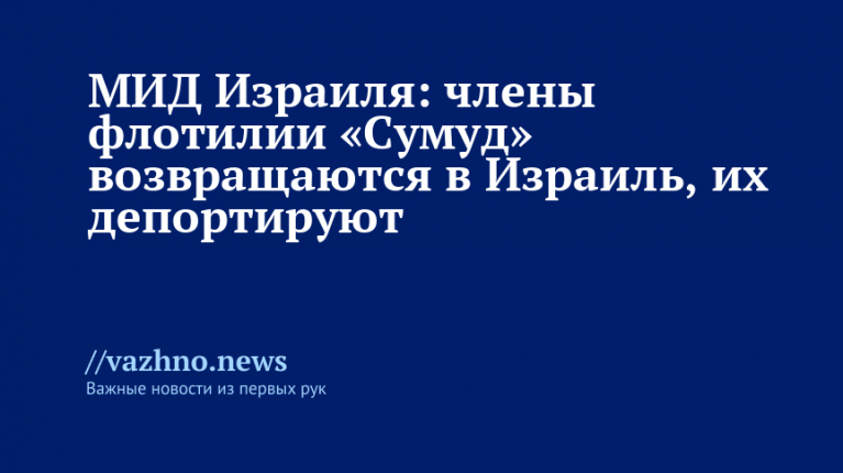 Пассажиры «Глобальной флотилии Сумуда» (GSF), которые направлялись в сектор Газа с грузом гуманитарной помощи, возвращаются обратно в Израиль, откуда их затем планируется депортировать. Об этом 2 октября проинформировал МИД Израиля через свой Telegram-канал.