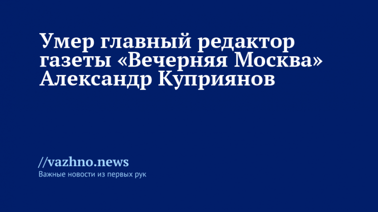 В четверг, 2 октября, на 75-м году жизни скончался Александр Куприянов, журналист и заслуженный работник культуры Российской Федерации, а также главный редактор газеты «Вечерняя Москва».