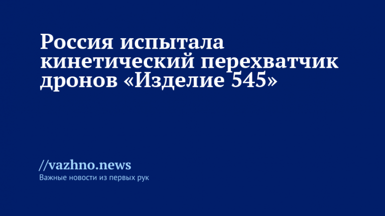 Российские эксперты испытали новый кинетический перехватчик, предназначенный для физического уничтожения дронов, получивший название «Изделие 545» в рамках проекта «Новые русские технологии». Об этом 2 октября сообщила компания-разработчик.