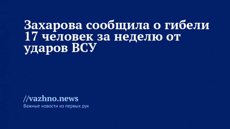 «За прошедшую неделю от обстрелов и атак беспилотников пострадали 156 человек, из которых 17 погибли, в том числе трое несовершеннолетних», — сообщила Захарова.
