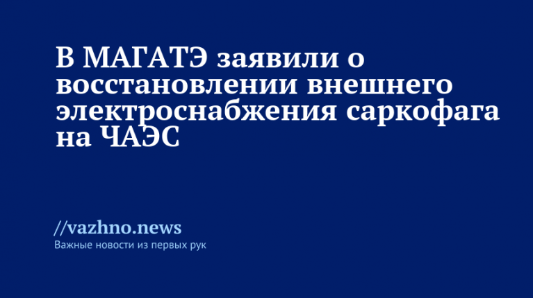 Внешнее электроснабжение саркофага на Чернобыльской атомной электростанции (ЧАЭС) было возобновлено. Об этом 2 октября проинформировала пресс-служба Международного агентства по атомной энергии (МАГАТЭ) в своем аккаунте в социальной сети Х (ранее Twitter).