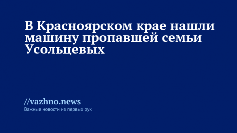 В поселке Кутурчин Красноярского края обнаружили автомобиль семьи Усольцевых, которые считались пропавшими. Об этом сообщили 2 октября представители пресс-службы регионального МВД.