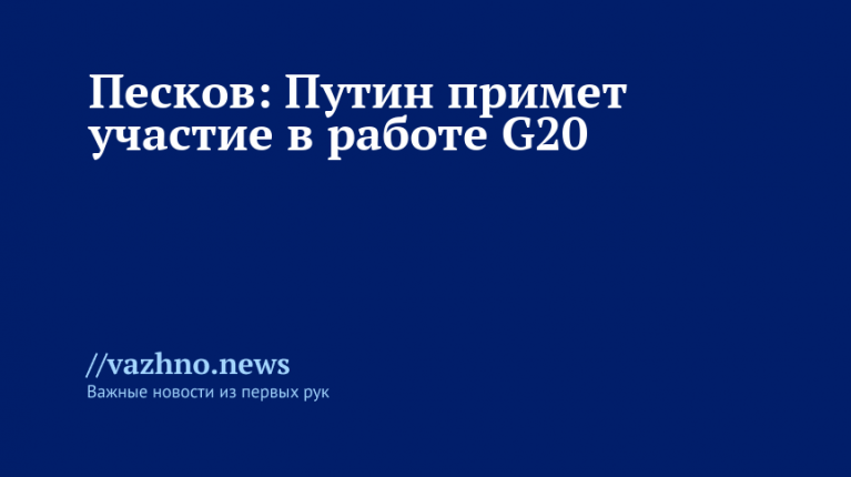 «В любом случае, он (Путин. — Ред.) будет участвовать в G20. Российская сторона представит себя на высоком уровне и проявит максимально активную позицию», — пояснил Песков в ответ на вопросы представителей СМИ.