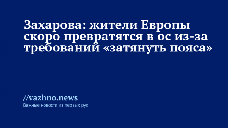 Захарова: жители Европы скоро станут осами из-за требований «затянуть пояса»