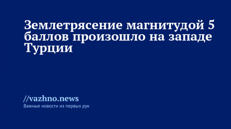 На западе Турции зарегистрировано землетрясение с магнитудой 5 баллов. Об этом 2 октября сообщили на официальном сайте Европейско-средиземноморского сейсмологического центра (EMSC).