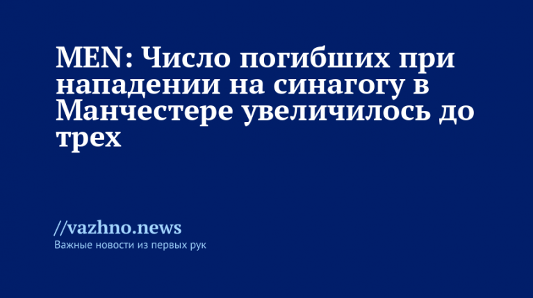 «В результате ужасного нападения возле синагоги в Манчестере были убиты два человека, а подозреваемый был застрелен», — говорится в сообщении издания.