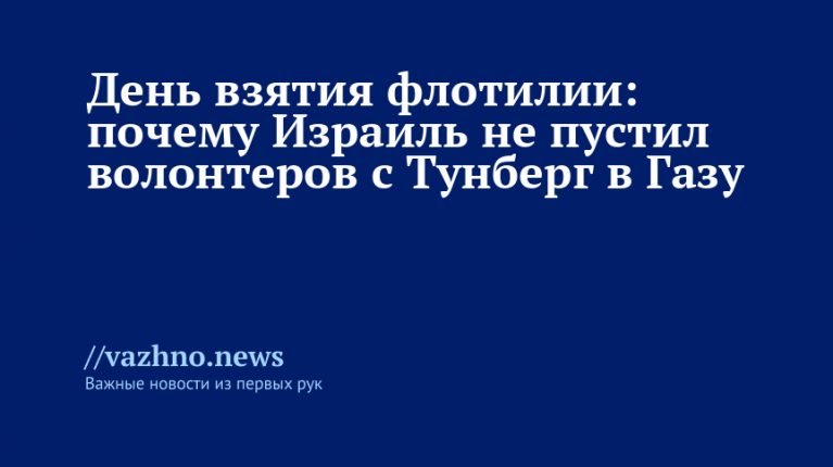 Задержание гуманитарной флотилии в Средиземном море, направлявшейся в Газу, вызвало глобальный резонанс и спровоцировало новые антиизраильские протесты. Эксперты считают, что Израиль своими действиями создал себе проблемы, сопоставимые с теми, которые могли бы возникнуть, если бы суднам удалось достигнуть берегов сектора Газа. Несмотря на решимость Израиля, в ближайшее время, вероятно, будут предприняты новые попытки отправки кораблей, возглавляемых активистами во главе с Гретой Тунберг.