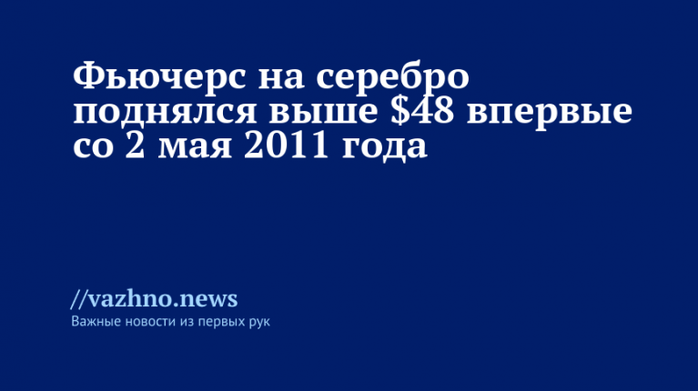 Фьючерс на серебро в первый раз с 2 мая 2011 года превысил отметку в $48 за тройскую унцию. Эту информацию 2 октября сообщили торги на нью-йоркской бирже Comex.
