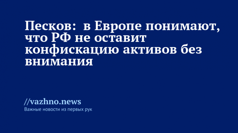 Песков: Европа понимает, что РФ не оставит конфискацию активов без реакции