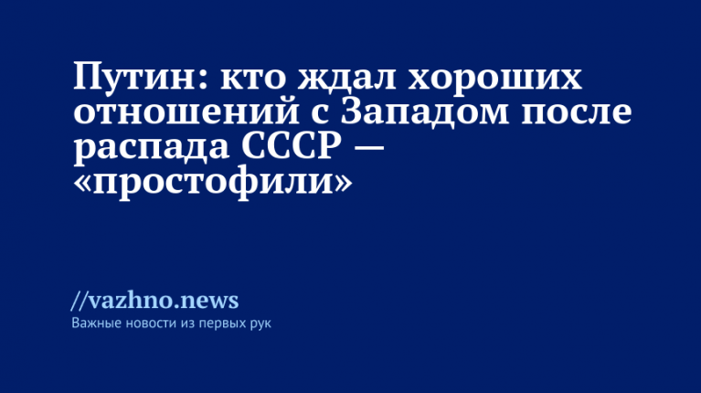 «Когда Советский Союз распался, российские простофили и бывшие советские чиновники думали, что теперь мы одна цивилизационная семья, что мы обнимемся и поцелуемся, несмотря на нашу приверженность традиционным ценностям, и что общая семья народов будет жить мирно и по-семейному», — отметил Путин.