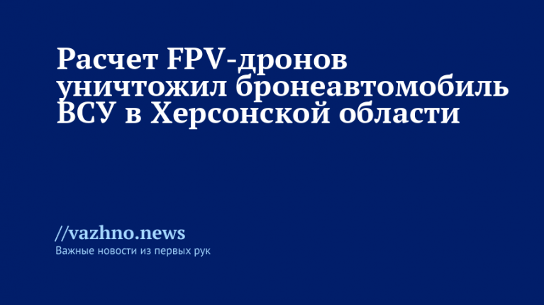 Российские FPV-дроны нанесли точечный удар по бронемашине ВСУ в Херсоне